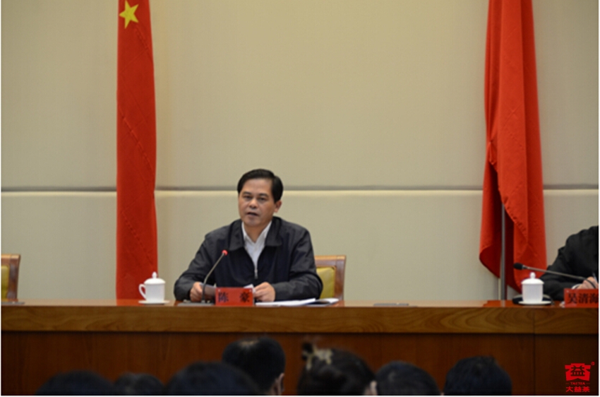 016年4月6日,云南省质量强省大会在云南省政府召开。勐海茶业有限责任公司(勐海茶厂)以第二届云南省人民政府质量奖(以下简称“省政府质量奖”)获奖企业身份参加了本次大会。