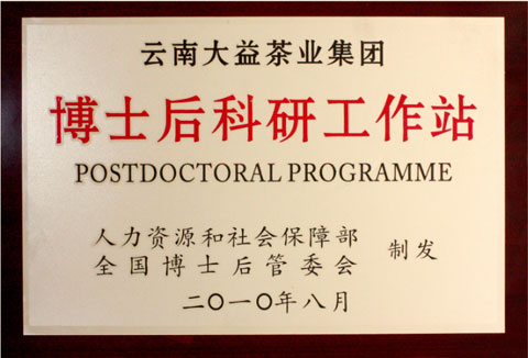 人力资源和社会保障部制发 大益茶叶集团博士后科研工作站