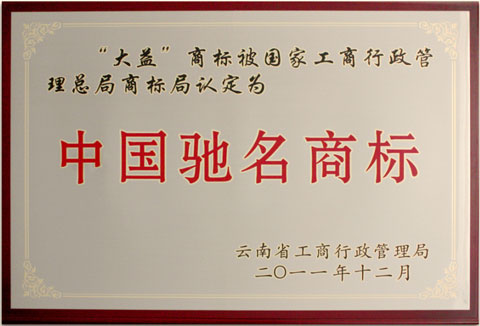 国家工商行政管理总局商标局认可,“大益”商标为中国驰名商标