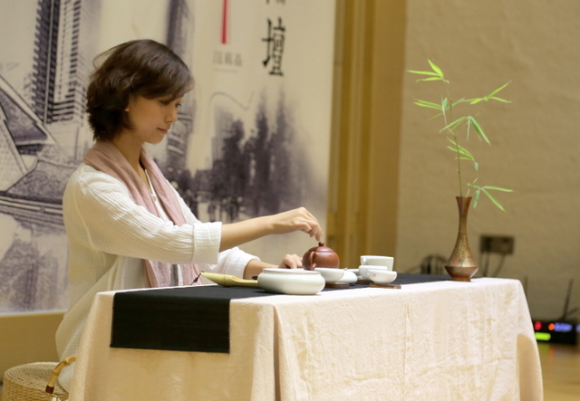大益茶道院老师在“两岸文化交流论坛”上演示大益八式