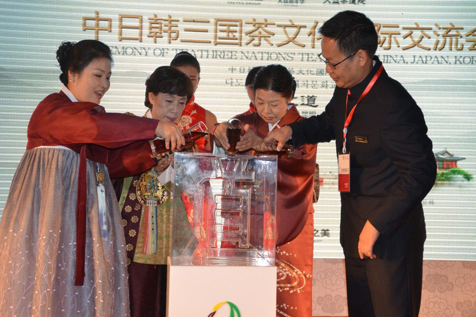 大益茶道院院长吴远之先生与日韩茶人共同为首届“‘茶之道’中日韩三国茶文化国际交流会”启幕“